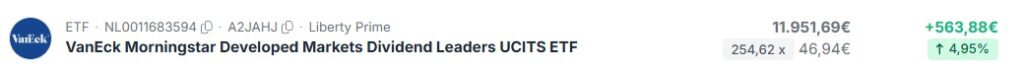 Mit den knapp 7000€ Erlös habe ich meinen VanEck Morningstar global dividend Leaders ETF weiter ausgebaut. Dazu habe ich mit etwa 900€ einen taktischen Trade bei Amazon gestartet, hier will ich nach 30-40% Zuwachs dann wieder verkaufen.